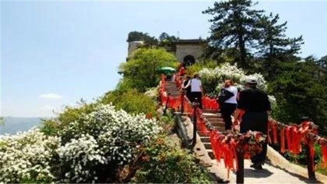 峰上景觀頗多,有影響的如真武殿、焦公石室、長(zhǎng)春石室、玉女窗、仙油貢、神土崖、倚云亭、老君掛犁處、鐵牛臺(tái)、白云仙境石牌坊等,且各景點(diǎn)均伴有美麗的神話傳說(shuō)。