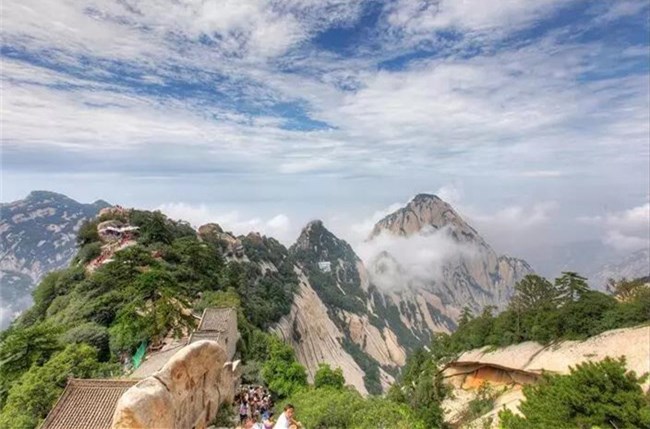 西峰海拔2082.6米,華山主峰之一,因位置居西得名。又因峰巔有巨石形狀好似蓮花瓣,古代文人多稱(chēng)其為蓮花峰、芙蓉峰。袁宏道在他的《華山》中記述:“石葉上覆而橫裂”;徐霞客《游太華山日記》中也記述:“峰上石聳起,有石片覆其上,如荷花。”李白詩(shī)中有“石作蓮花云作臺(tái)”句,也當(dāng)指此石。