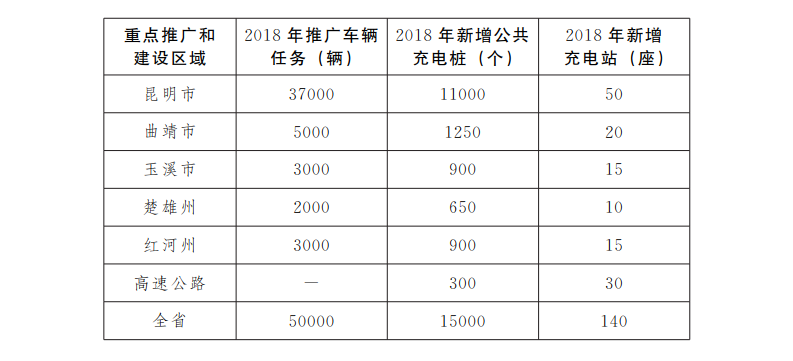 新能源汽車推廣的具體目標(biāo)為:重點圍繞私人購車、政府采購、公共出行、城市物流以及旅游等領(lǐng)域,在昆明市、曲靖市、玉溪市、楚雄州、紅河州等滇中城市群和重點旅游城市及景區(qū),2018年推廣5萬輛新能源汽車。其他州、市不下達推廣任務(wù),由州、市人民政府結(jié)合實際積極推廣新能源汽車。