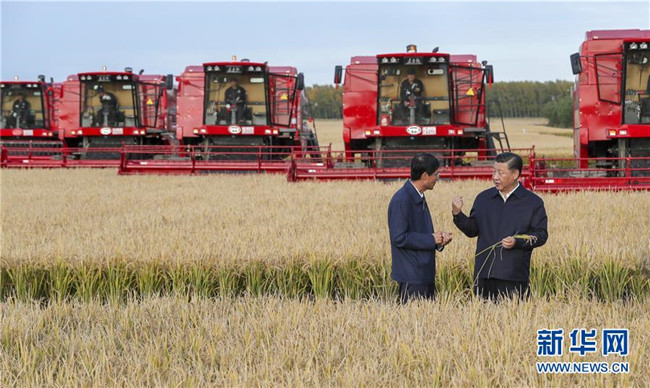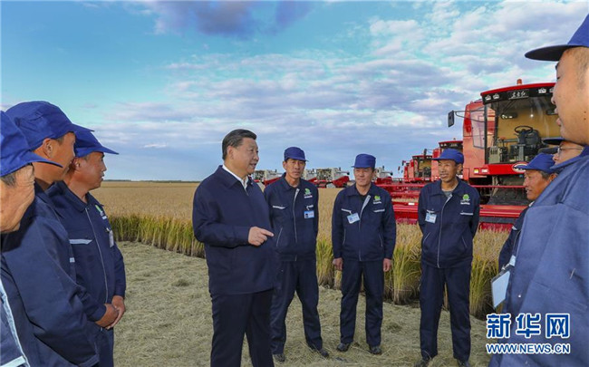 9月25日至28日,中共中央總書(shū)記、國(guó)家主席、中央軍委主席習(xí)近平在東北三省考察,主持召開(kāi)深入推進(jìn)東北振興座談會(huì)。這是25日下午,習(xí)近平在黑龍江農(nóng)墾建三江管理局七星農(nóng)場(chǎng)萬(wàn)畝大地號(hào)與農(nóng)場(chǎng)工人們親切交談。 新華社記者 謝環(huán)馳 攝