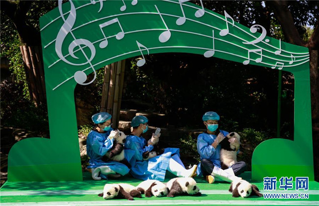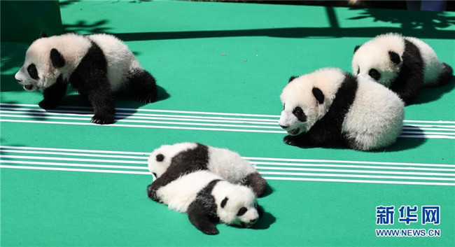 這是9月28日在成都大熊貓繁育研究基地月亮產(chǎn)房拍攝的大熊貓寶寶。 當(dāng)日,成都大熊貓繁育研究基地為2018年出生的12只新生大熊貓寶寶舉行了一場別開生面的亮相活動(dòng)。