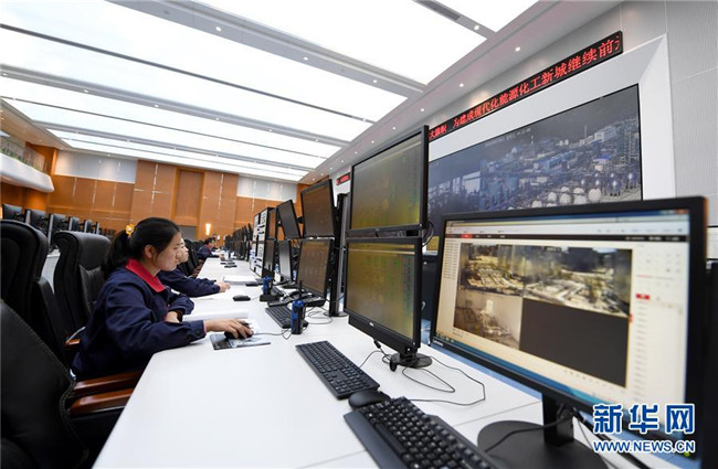 延安煤油氣資源綜合利用項(xiàng)目工作人員在中控室工作(9月28日攝)。新華社記者 劉瀟 攝
