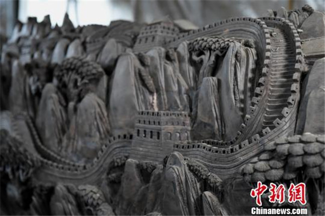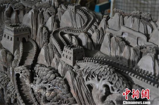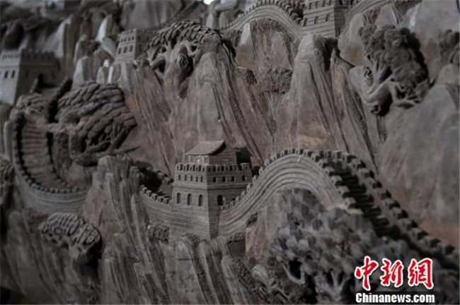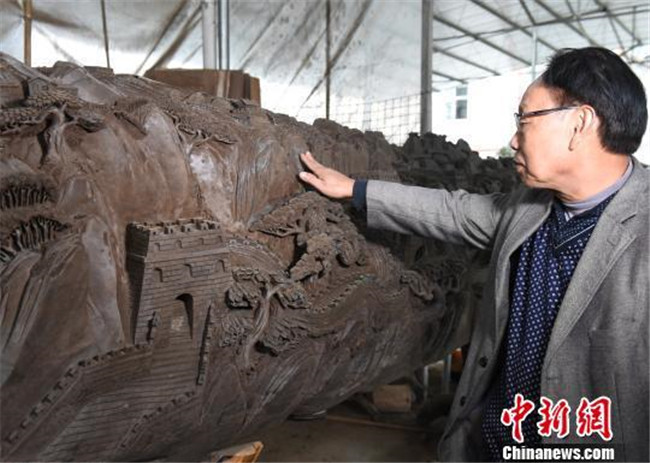 重慶市民耗時(shí)三個(gè)月在六米烏木上雕刻萬里長城