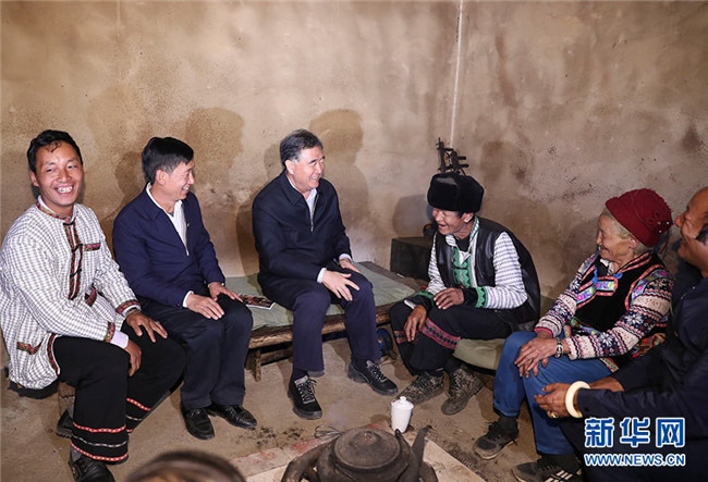 近日,中共中央政治局常委、全國政協(xié)主席汪洋在云南調(diào)研藏區(qū)民族宗教和脫貧攻堅工作。這是10月15日,汪洋在香格里拉市虎跳峽鎮(zhèn)金星村調(diào)研。 新華社記者 丁林 攝