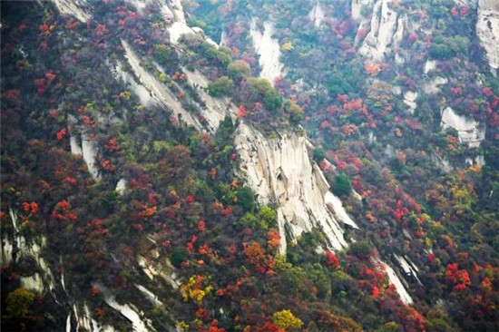 當(dāng)秋風(fēng)拂過山巒,華山自上而下流動(dòng)著豐富而鮮明,生動(dòng)而絢麗的色彩。