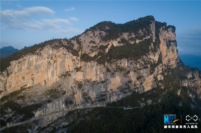 航拍重慶“懸崖天路” 一側(cè)公路 一側(cè)懸崖峭壁
