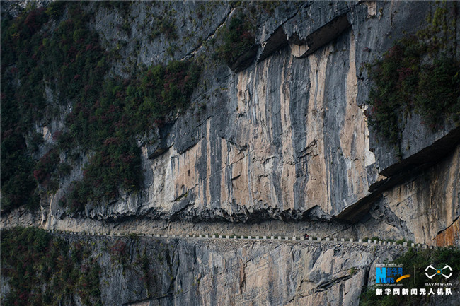原先,村民進(jìn)出得手腳并用四個(gè)小時(shí),爬過800米的峭壁。交通的閉塞,阻礙著當(dāng)?shù)氐陌l(fā)展,為了改變貧窮的面貌,當(dāng)?shù)卮迕褡园l(fā)集資修路。新華網(wǎng) 李相博 攝