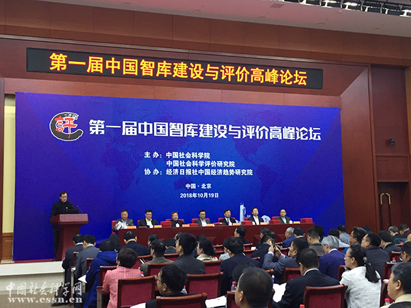2018年10月19日,由中國社會科學評價研究院主辦,經(jīng)濟日報社中國經(jīng)濟趨勢研究院協(xié)辦的“第一屆中國智庫建設與評價高峰論壇”在京舉行。來自中國社會科學院、部委所屬專業(yè)性智庫、各省市級地方社科院和黨校行政學院、各高校智庫、企業(yè)智庫、社會智庫的百余名國內(nèi)智庫專家學者出席本次論壇。