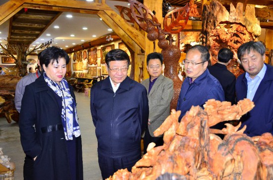 張建龍首先來到烏馬河木藝文化小鎮(zhèn),詳細了解小鎮(zhèn)規(guī)劃布局和建設發(fā)展情況,通過觀看小鎮(zhèn)宣傳片,現(xiàn)場參觀小鎮(zhèn)服務中心、木藝產(chǎn)品店,對伊春市木藝文化產(chǎn)業(yè)發(fā)展表示高度肯定。他指出要繼續(xù)突出原生態(tài)特色,加強創(chuàng)新創(chuàng)意設計,滿足人民群眾對林業(yè)產(chǎn)品多樣化的需求。走進美江木藝公司,就如同走進了藝術的殿堂,制作精良的木拼畫、惟妙惟肖的根雕、造型別致的樹榴工藝產(chǎn)品,一件件精美的木制工藝品,令人目不暇接。張建龍仔細觀賞這些木制產(chǎn)品,向企業(yè)負責同志詳細了解產(chǎn)品創(chuàng)意設計和市場銷售等情況。勉勵企業(yè)要再接再厲,繼續(xù)做好產(chǎn)品研發(fā),全面提升工藝水平,創(chuàng)造出更多更好的生態(tài)特色產(chǎn)品,進一步增強林業(yè)發(fā)展的活力與動力。