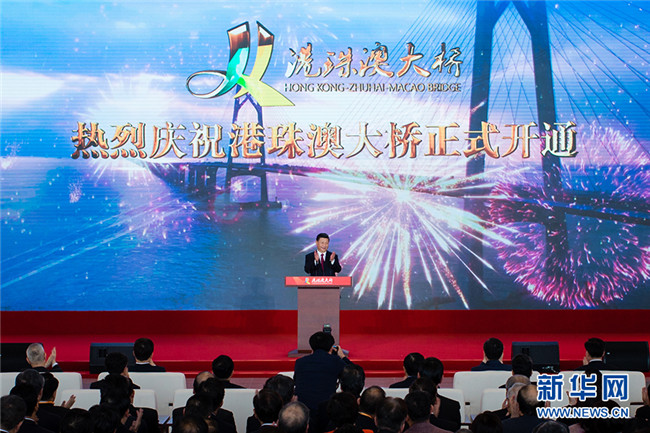 在觀看了反映大橋建設(shè)情況視頻后,中共中央政治局委員、廣東省委書記李希,香港特別行政區(qū)行政長官林鄭月娥,澳門特別行政區(qū)行政長官崔世安和韓正先后致辭。
