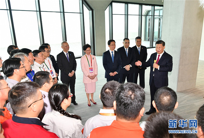 10月23日上午,港珠澳大橋開通儀式在廣東省珠海市舉行。中共中央總書記、國家主席、中央軍委主席習(xí)近平出席儀式,宣布大橋正式開通并巡覽大橋。這是習(xí)近平會見大橋管理和施工等方面的代表,同他們親切交談。 新華社記者殷博古攝