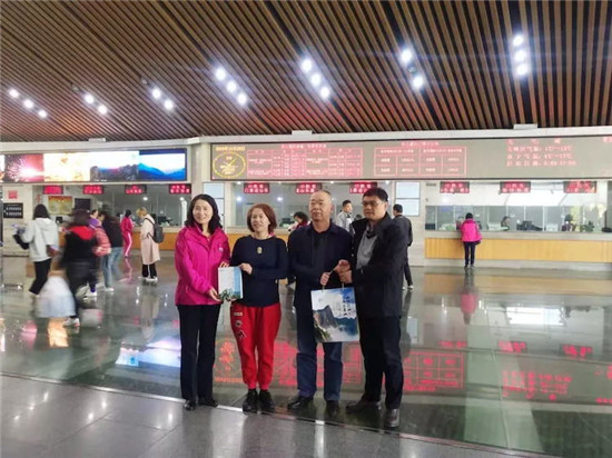 為此,票務(wù)中心根據(jù)集團公司領(lǐng)導(dǎo)安排,組織了向第3000001位幸運游客代表劉姓游客贈送華山旅游紀念品的活動,活動現(xiàn)場票務(wù)中心主任李泉向該名游客贈送了代表華山四季美景的集郵冊一套和《華山楹聯(lián)》書籍一本,劉姓游客非常高興,表示華山景美,人更美,下次還會帶親朋好友游覽。