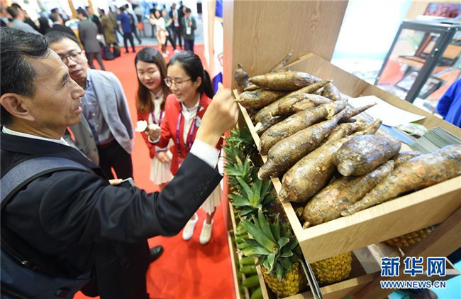 11月6日,參會者在首屆中國國際進口博覽會多米尼加展區(qū)觀看展出的農產品。新華社記者韓瑜慶攝
