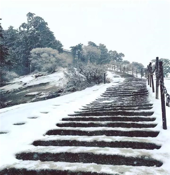 冬季的華山少了夏季的喧鬧,白雪與松檜、陽(yáng)光與山石就是它最美的景象。每年12月至次年3月是華山的雪季,而前兩天華山已經(jīng)提前下過(guò)雪了,整個(gè)山體被白雪覆蓋,樹(shù)木、巖石、道觀上都披上一層厚厚的棉衣。走進(jìn)華山仿佛是走進(jìn)了一個(gè)純白的圣潔之地,白色的花崗巖、白色的雪花、白色的樹(shù)木…… 在華山,白色也是如此的浪漫唯美。