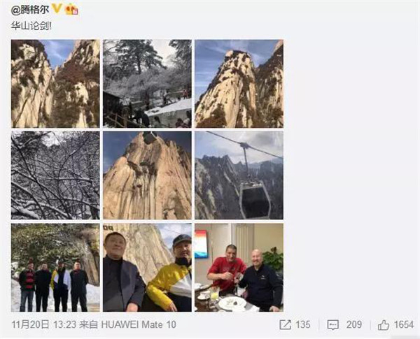 11月20日,騰格爾老師發(fā)布新浪微博稱:“華山論劍!”這當(dāng)中,有對(duì)我們奇險(xiǎn)華山美景的肯定與共鳴,更有騰格爾老師給我們“奇險(xiǎn)峻秀”的華山帶來(lái)的積極的宣傳效果。