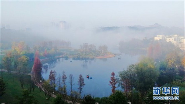 這是11月26日在貴陽市觀山湖區(qū)閱山湖公園內(nèi)拍攝的霧景。新華社記者 劉續(xù) 攝