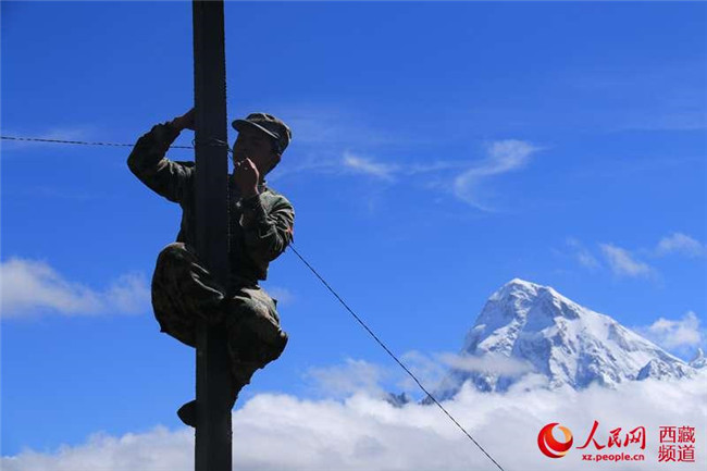 西藏軍區(qū)某部通信分隊(duì)縱兵生疏地域,消除“保仗”盲區(qū),通信骨干敢于架設(shè)“天線”,美到天際。古修宇 攝西藏軍區(qū)某部通信分隊(duì)縱兵生疏地域,消除“保仗”盲區(qū),通信骨干敢于架設(shè)“天線”,美到天際。古修宇 攝