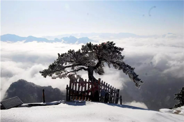 塵世的喧器與愁憂都讓雪裹去了,唯獨給記憶留下了一片雪一樣潔凈的空白,揮不去華山雪中的松樹留在我腦海中的形象。那是千百年來情澆情鑄的精靈。