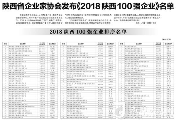 本次大會(huì)發(fā)布的2018陜西百強(qiáng)企業(yè),涉及陜西省能源化工、裝備制造、服務(wù)業(yè)和消費(fèi)品等多個(gè)行業(yè)。陜西延長石油(集團(tuán))有限責(zé)任公司、陜西煤業(yè)化工集團(tuán)有限責(zé)任公司、陜西有色金屬控股集團(tuán)有限責(zé)任公司、東嶺集團(tuán)位列2018陜西百強(qiáng)企業(yè)前四位,并位列陜西省民營企業(yè)第一名。