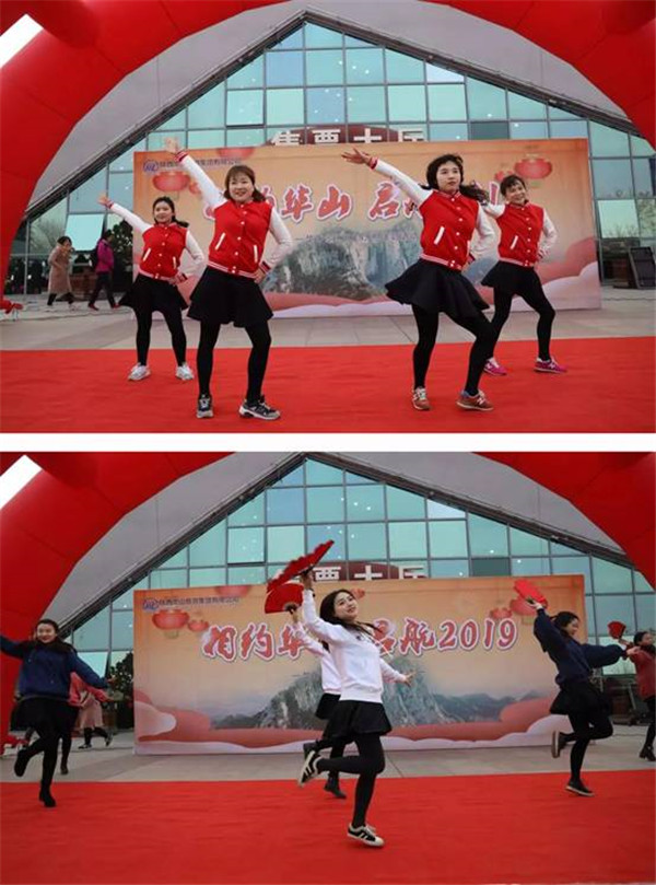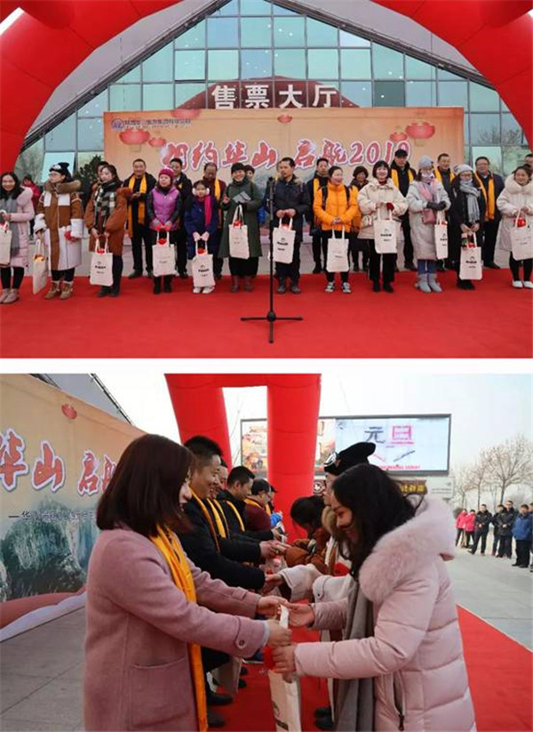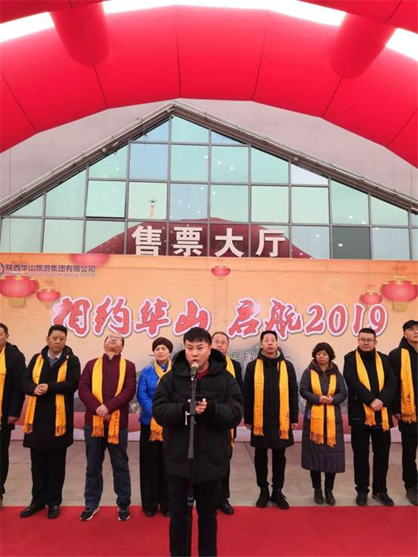 元旦當(dāng)天上午,伴隨著景區(qū)工作人員的熱情文藝表演,“相約華山 啟航2019”迎新年啟動(dòng)儀式正式拉開帷幕,華山風(fēng)景名勝區(qū)管理委員會(huì)黨工委委員張永江代表華山全體員工向廣大游客朋友們致新年賀詞,恭祝全國(guó)游客新年快樂(lè)。他表示,2018年是華山的拼搏年,華山旅游人數(shù)首次突破300萬(wàn)人次大關(guān),隨著大華山旅游目的地的不斷建設(shè)與完善,休閑度假、康體養(yǎng)生、戶外拓展、自駕露營(yíng)、溫泉療養(yǎng)等各項(xiàng)旅游項(xiàng)目都受到中外游客的青睞。2019年,華山景區(qū)將揚(yáng)帆起航,再創(chuàng)輝煌。