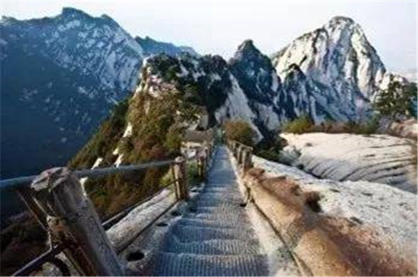 北峰,又名云臺峰,山勢孤聳,三面都是絕壁,只有一道山嶺通往南面山嶺,形勢一分險要。影片《智取華山》的故事,就發(fā)生在這里。從北峰繼續(xù)前進,就到了登華山的第四險關——擦耳崖,因路窄且依壁臨淵,游人無不貼壁擦耳而行。