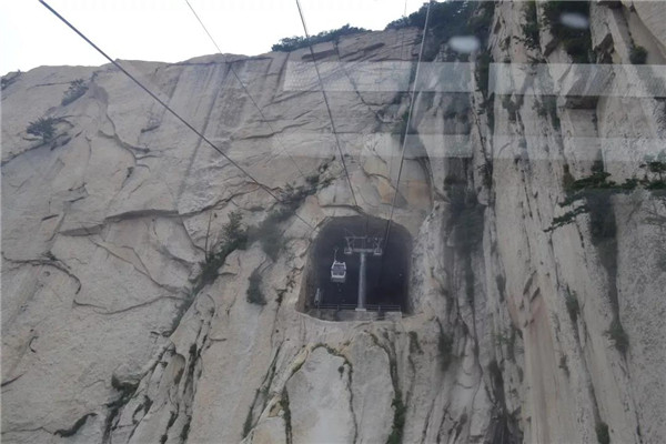 從華山的群峰頂飛越,就像乘坐飛機(jī)往云層之上爬升一樣,心中提著一口氣,不敢呼也不敢喘;遇到陡直的升降,好像失去控制的電梯讓人緊張。可是索道轎箱外的奇險(xiǎn),又會(huì)讓人情不自禁驚呼、尖叫!正是上午巳時(shí),盛夏的驕陽(yáng)耀眼炙熱。四周刀劈斧鑿般的潔白山體,在無(wú)遮無(wú)掩的烈日的照耀下,白的晃眼,也許這就是“華山睛雪”的由來(lái)。