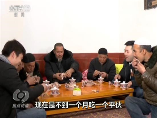 吃平伙是東鄉(xiāng)族老百姓的一個(gè)傳統(tǒng),就是大家買(mǎi)一只羊,平攤價(jià)格以后搭伙吃羊肉。過(guò)去,只有家里娶媳婦、蓋房子這樣的大事,才能吃個(gè)平伙。現(xiàn)在生活好了,家里請(qǐng)客的時(shí)候也吃平伙,今天,馬麥志要請(qǐng)客,不用大家出份子錢(qián)了。他說(shuō)大兒子在外面打工,自己在干清潔工,媳婦在車(chē)間里面炸油馃馃,收入應(yīng)該有3萬(wàn)多元。