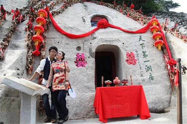 “洞房”一詞最早也是源自于華山,現(xiàn)在的西峰還存有“天下第一洞房”的勝跡!每年的情人節(jié)都會有很多的善男信女帶著自己鐘愛的另一半來華山,以祈求天長地久,愛情圓滿!