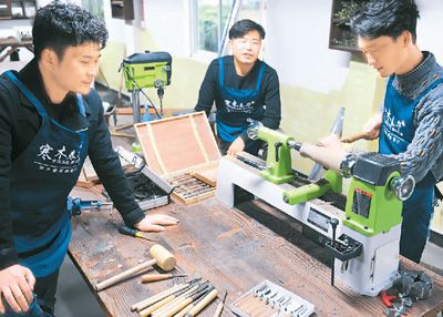 回鄉(xiāng)創(chuàng)業(yè)正成為大學生就業(yè)的重要方向。上圖為浙江省湖州市安吉縣統里村,3名大學畢業(yè)生在工作坊內加工花器。張禮慶攝(新華社發(fā))