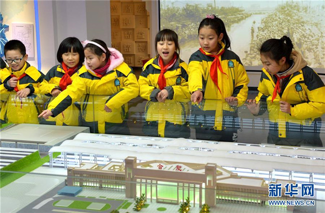 2月17日,合肥市西園新村小學(xué)學(xué)生在合肥火車站陳列室參觀。 當(dāng)日,安徽省合肥市西園新村小學(xué)學(xué)生來到合肥火車站陳列室,了解春運故事,感受鐵路發(fā)展。 新華社發(fā)(黃博涵攝)