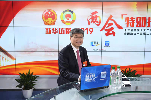 全國(guó)人大代表、奇瑞汽車股份有限公司黨委書(shū)記、董事長(zhǎng)尹同躍,3月6日做客新華網(wǎng)2019全國(guó)兩會(huì)特別報(bào)道。新華網(wǎng) 李相博 攝