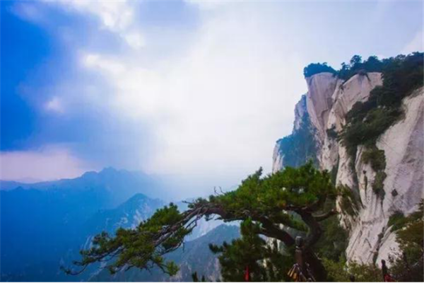 古人云:“山無(wú)石不奇,無(wú)純石不大奇”。華山奇石當(dāng)屬“大奇”,雄奇瑰麗,風(fēng)姿獨(dú)具,能令天下人“一見(jiàn)換神骨”。唐詩(shī)人孟郊《游華山云臺(tái)觀(guān)》詩(shī)贊華山是“華岳獨(dú)靈異,草木恒新鮮。山盡五色石,水無(wú)一色泉”。華山的主體是由一塊純粹完整的巨型花崗巖構(gòu)成,呈柱體狀,巍然屹立,四方如削,峭陡挺拔,高聳云天。正如朱德詩(shī)中所說(shuō)“華山直挺黃河邊,雄視東方函谷關(guān)”,大石大奇的壯觀(guān)氣勢(shì)可謂舉世獨(dú)具。其次,它的三座主峰合攏相擁而形成的蓮花狀山勢(shì),也是“石之大奇”的展現(xiàn)。前人說(shuō)三峰“一石以為莖,二峰以為葉”,形象地狀摹出了華山三峰形似蓮花的狀態(tài)和高表云天,怒放群山的博大與宏偉。另外,由于地殼的裂變斷震,許多似人似物的象形奇石散落于景區(qū)各處,形成了獨(dú)具特色,饒有興趣的奇石景觀(guān),而且這些奇石大多都伴隨著一個(gè)神奇而美麗的傳說(shuō)故事,更增添了這類(lèi)景觀(guān)的生動(dòng)趣味和神秘色彩??梢哉f(shuō),華山之石,無(wú)石不奇。
