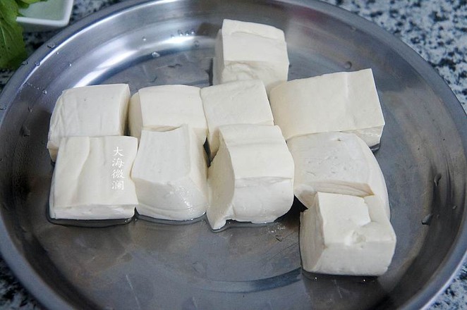 1.買回來(lái)的水豆腐,巴馬這邊1元錢買這樣大小的10塊豆腐,做一頓剛剛好,很嫩,用水沖洗一下,控凈水分