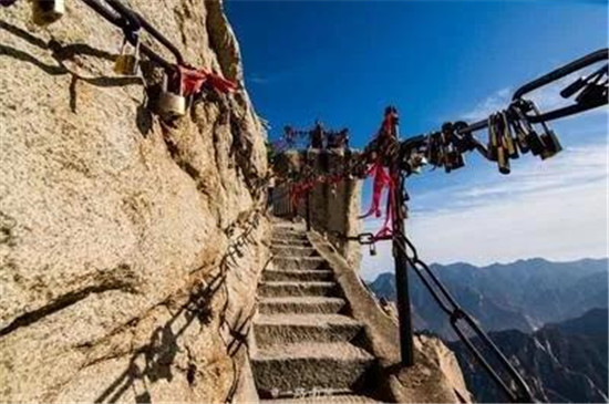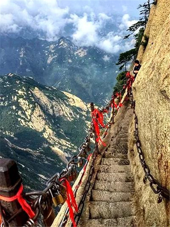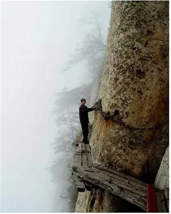 譯:華山上陡峭的長空棧道于700年前建成,這是那時(shí)的隱士為了找住在深山里神仙而建。