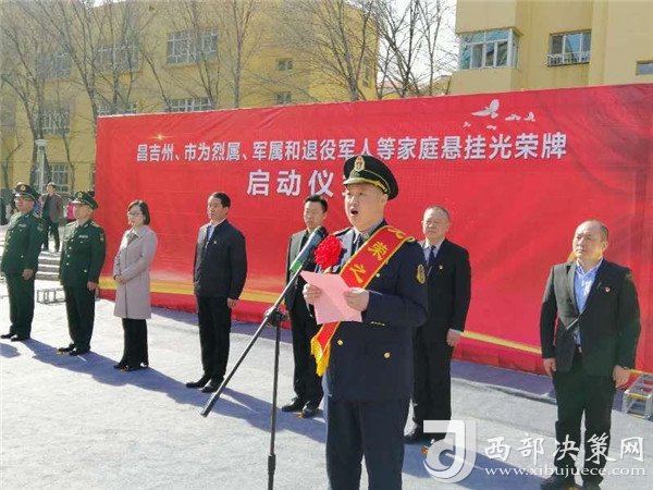 3月28日上午 ,昌吉州、市為烈屬、軍屬和退役軍人等家庭集中懸掛光榮牌啟動儀式在昌吉北京南路街道油運基地社區(qū)小游園舉行。 昌吉州、市領導、退役軍人事務局干部、現(xiàn)役軍人代表、烈屬、軍屬、退役軍人代表、各社區(qū)書記、訪惠聚工作隊隊長、雙擁干事共計300余人參加啟動儀式。