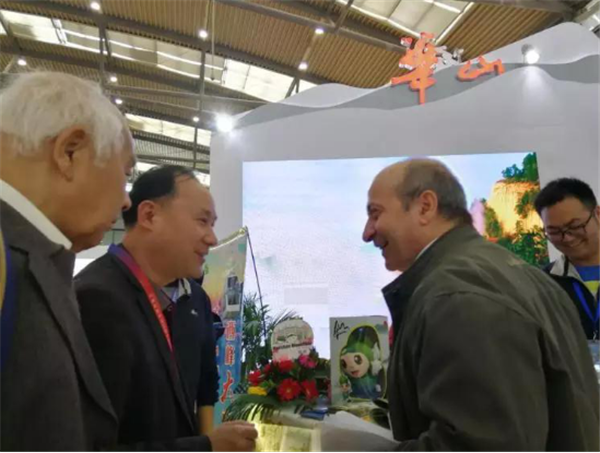 會(huì)上,華山管委會(huì)常務(wù)副主任郭文平、華山管委會(huì)黨工委委員張永江、華山管委會(huì)文物旅游處副處長(zhǎng)王領(lǐng)娣一行來到展臺(tái)視察工作,并在現(xiàn)場(chǎng)與市民互動(dòng),郭文平主動(dòng)當(dāng)起了華山講解員,為前來咨詢的市民答疑解惑,宣傳華山,贈(zèng)送禮物。