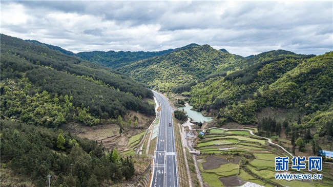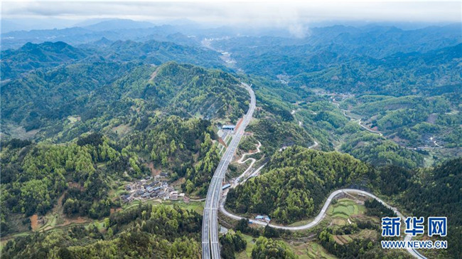 4月3日無(wú)人機(jī)拍攝的三荔高速周覃至水各路段。新華社記者 陶亮 攝