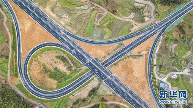 4月3日無(wú)人機(jī)拍攝的三荔高速周覃互通。 新華社記者 陶亮 攝