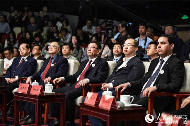 內(nèi)蒙古自治區(qū)黨委常委、宣傳部部長白玉剛(左三),人民網(wǎng)黨委書記、董事長、總裁葉蓁蓁(右二)等領導和嘉賓出席發(fā)布會。