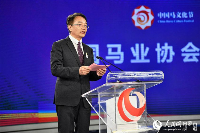 內(nèi)蒙古新華發(fā)行集團董事長冀學博發(fā)布第二屆中國馬文化節(jié)暨首屆內(nèi)蒙古國際馬文化博覽會賽馬賽事活動。