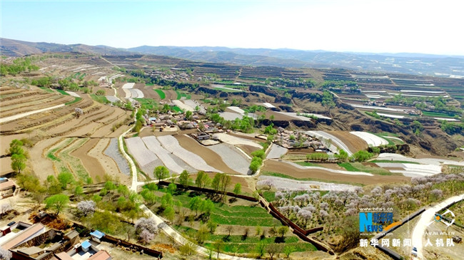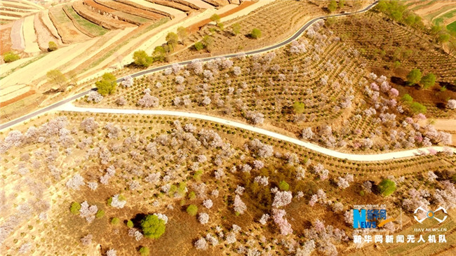 原標題:【飛“閱”中國】甘肅定西:黃土塬上別樣景 千樹杏花笑春風(fēng)