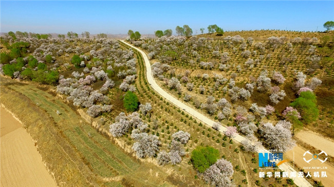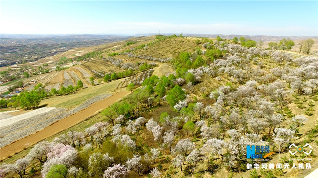 甘肅定西:黃土塬上別樣景 千樹杏花笑春風(fēng)