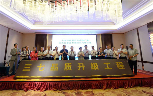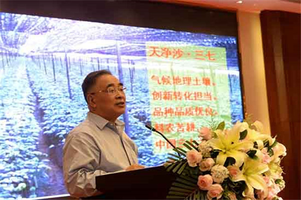 4月20日,中國工程院醫(yī)學(xué)部主任、中國中醫(yī)科學(xué)院院長張伯禮院士,中國中醫(yī)科學(xué)院中藥研究所所長陳士林,中國藥典委員會首席科學(xué)家錢忠直教授,南京農(nóng)業(yè)大學(xué)中藥材研究所所長郭巧生教授,云南中醫(yī)藥大學(xué)校長熊磊教授等專家學(xué)者抵達(dá)文山,調(diào)研文山三七發(fā)展?fàn)顩r,參與“中國藥材品質(zhì)升級推廣會暨無公害三七栽培技術(shù)培訓(xùn)”并作主題報(bào)告。會議上公布了首次獲批國家植物新品種權(quán)的三七品種,并透露出本次獲批新品種的特性:苗鄉(xiāng)1號多糖含量提高23.5%,苗鄉(xiāng)2號三七皂苷R1含量提高56.3%。