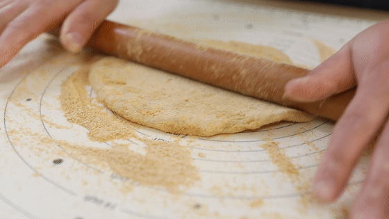 15.用搟面杖將糯米面團(tuán)搟成長(zhǎng)方形面片。