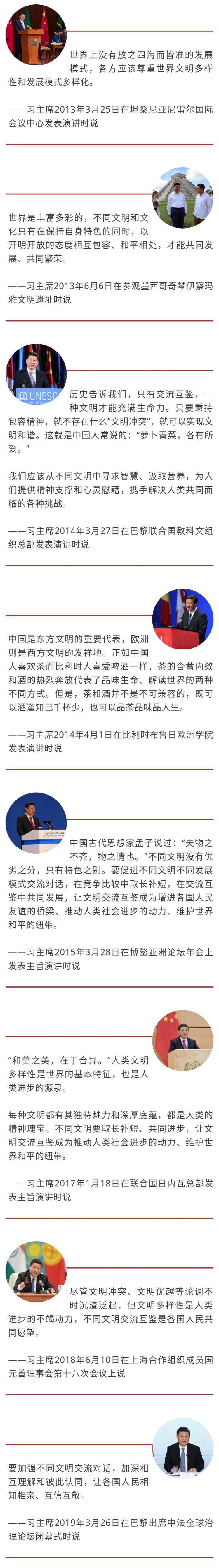 習主席強調(diào)文明是多彩的、平等的、包容的。今天,“第一報道”帶你速覽習主席近年來在不同國際場合關于文明交流的一些金句。(記者張偉)