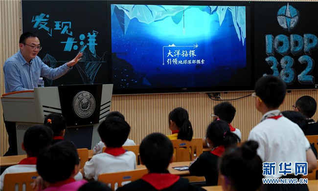 當(dāng)日,上海同濟小學(xué)開展了一堂科普直播課。正在南極開展大洋鉆探的中外科學(xué)家通過視頻連線直播的方式,向該校四年級學(xué)生介紹在南極海域開展大洋鉆探的科考生活和科學(xué)意義。