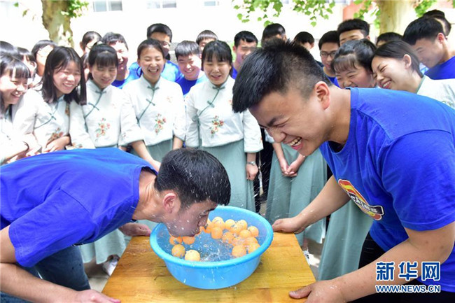 2019年高考臨近,多地高中開展形式多樣的減壓活動,幫助學(xué)生釋放緊張情緒,以平和、樂觀的心態(tài)迎接高考。新華社發(fā)(賈敏杰 攝)