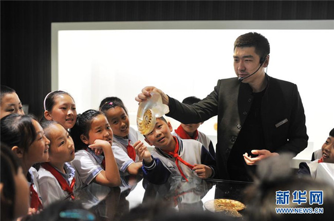 5月16日,學(xué)生們在青島貝殼博物館了解鸚鵡螺構(gòu)造。新華社發(fā)(王海濱 攝)