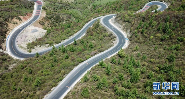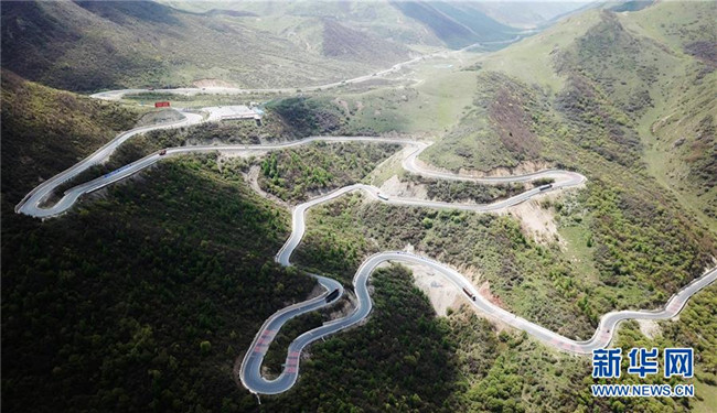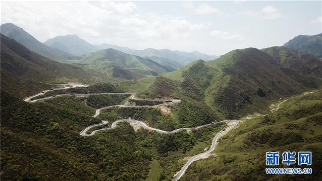 這是分水嶺上蜿蜒曲折的國(guó)道212線(5月21日無(wú)人機(jī)拍攝)。 海拔2980米的分水嶺位于甘肅省定西市漳縣和渭源縣交界處,是黃河兩大支流渭河水系和洮河水系的界嶺,被當(dāng)?shù)厝朔Q為“山路十八彎”的國(guó)道212線蜿蜒其中,沿途景色怡人。 新華社記者 陳斌 攝