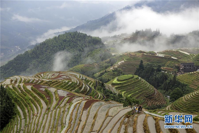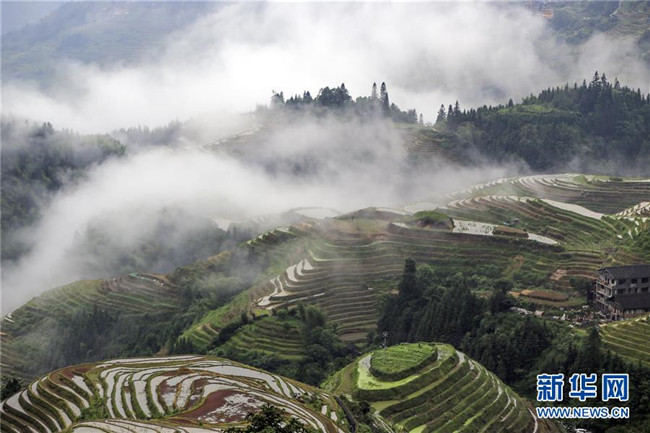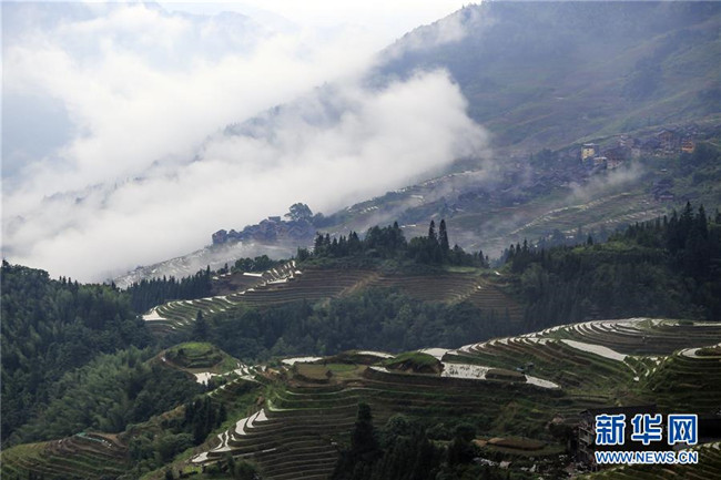 雨后的廣西龍勝各族自治縣龍脊梯田云霧升騰,村寨、梯田在云海中若隱若現(xiàn),美如仙境。 新華社發(fā)(劉滿(mǎn)倉(cāng) 攝)